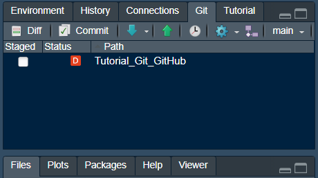 Con esto se creará un repositorio de Git localmente en conjunto con el proyecto de R. Podemos agregar archivos ya existentes a este repositorio para comenzar a registrar los cambios con Git.