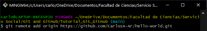 Es posible conectar un repositorio local existente con un repositorio remoto. Primero es necesario crear un repositorio nuevo en GitHub y copiar la URL de éste. Usando el comando git remote add origin url (donde url es la URL del repositorio nuevo de GitHub) en la terminal y directorio inicializado, creamos la conexión entre el repositorio local y el remoto.