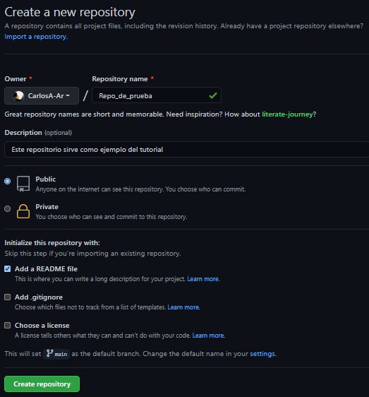 + en la esquina superior derecha.New repository.